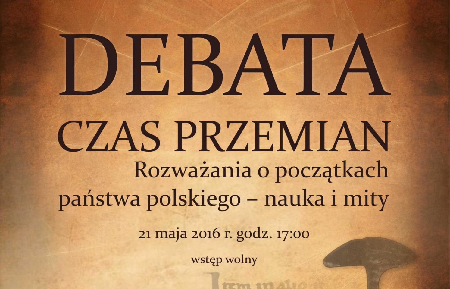21 maja 2016 roku o godz. 17:00 zapraszamy na debatę o początkach polskiej państwowości. Uczestniczyć w niej będą znakomici historycy i archeolodzy.