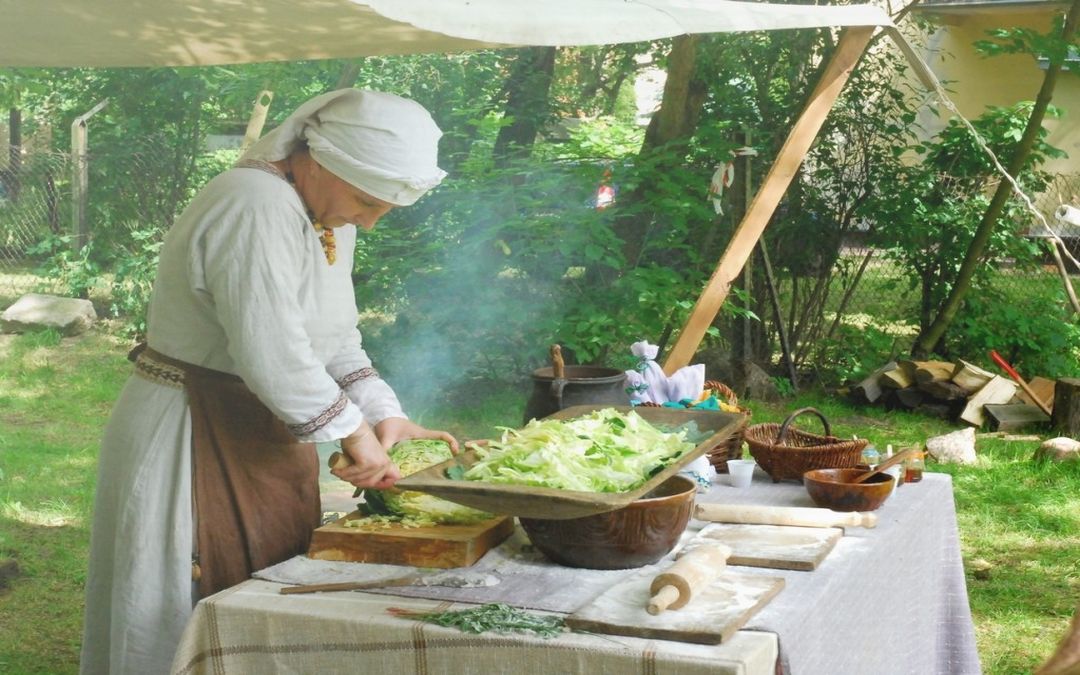 Podpłomyki z mąki grochowej, jagły, ryba w pokrzywach, warzenie piwa, barszcz z barszczu… to tylko niektóre z potraw, z którymi trzeba będzie się zmierzyć podczas warsztatów. Krojenie mięsa krzemiennym nożem, zbudowanie paleniska, wędzarni, prażnicy, mielenie w żarnach mąki, gotowanie w glinianych garach na żywym ogniu, poszukiwanie w terenie pożywienia to kolejne zadania do wykonania.